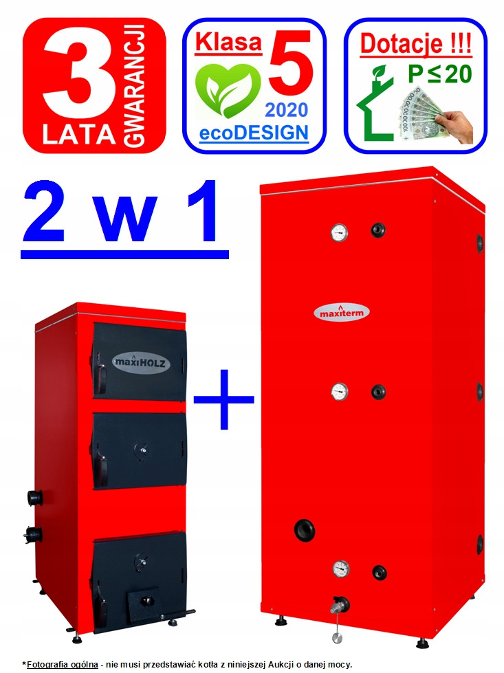 3) Zgodnie z obowiązującymi przepisami - istnieje obowiązek montażu kotłów zasypowych i na HolzGas (Klasy 5/ecoDESIGN) razem z Buforami Ciepła, które umożliwiają pracę tych kotłów z mocą maxymalną/nominalną. *maxiHOLZ – to marka / symbol graficzny / znak handlowy - używany tylko do celów marketingowych i reklamowych – oznaczenie techniczno-dokumentacyjne typu urządzenia czyli nazwa i kod produkcyjny dla typoszeregu w/w kotłów, to: PellPall D w tym w Dokumentach Certyfikacyjnych i Dokumentacji Techniczno-Ruchowej. Kocioł spełnienia tzw. Podwyższone Kryterium (Pył ≤ 20 mg/m3), które uprawnia do Podwyższonego Dofinansowania np.: z Programu Czyste Powietrze oraz w Lokalnych Gminnych i Miejskich Programach Dofinansowań. (Powyższe zdjęcia produktów mają tylko charakter poglądowy - nie muszą przedstawiać konkretnego produktu o danej wielkości/pojemności/mocy , którego dotyczy aukcja/prezentacja/oferta).