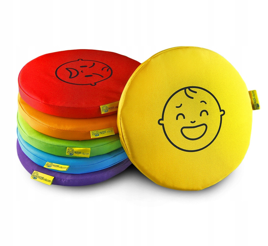 Materiał:barwny, wytrzymały. Kolory pokrowców: fioletowy, błękitny, zielony, żółty, pomarańczowy, czerwony. Średnica: 30 cm Wysokość: 3 cm Zestaw zawiera: 6 sztuk poduszek ze zdejmowanymi pokrowcami z nadrukiem Produkt zalecany dla dzieci powyżej 3 miesiąca życia Produkt polski. Centrum Akson jest producentemchust animacyjnych akson, a także woreczków i szarf gimnastycznych, tuneli animacyjnych, kolorowych piłeczek do suchych basenów i zabaw z chustą i wielu innych akcesoriów edukacyjnych i animacyjnych.Od lat jest też propagatoremPedagogiki Zabawy i Pedagogiki Cyrkuw Polsce i poza granicami kraju. Kupuj najlepsze! Kupuj u źródła!