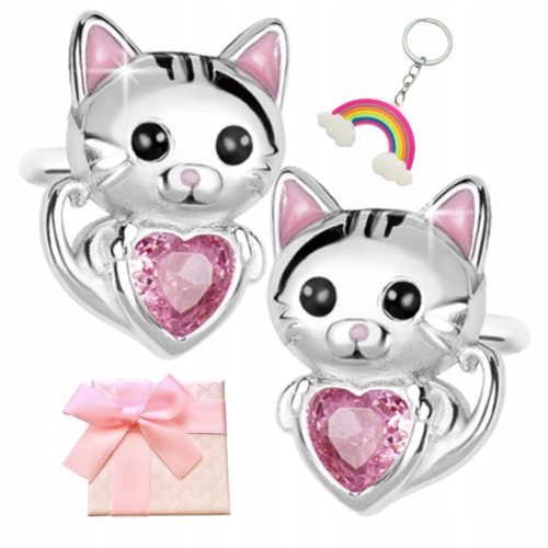 Srebrne kolczyki kotki dla dziewczynki, wykonane ze srebra próby 925, oprawione różową cyrkonią, która dodaje blasku.