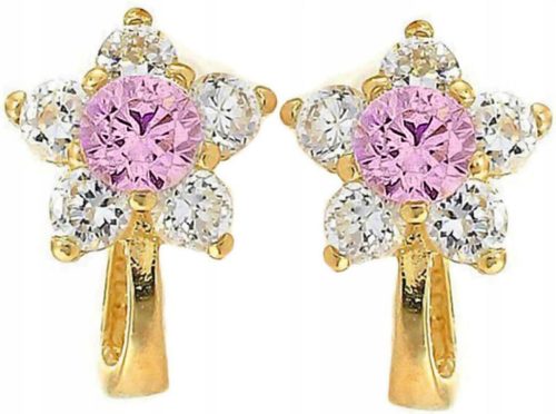 Złote kolczyki dziecięce o kształcie kwiatów. Zdjęcia przedstawiają autentyczny wygląd oferowanego przez nas produktu.