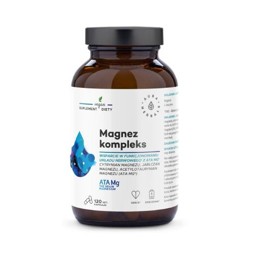 jabłczan magnezu standaryzowany na 11,3% magnezu, sole magnezowe kwasu cytrynowego standaryzowane na 14,5% magnezu, taurynian acetylu magnezu, w tym magnez 6,5% (ATA Mg®), inulina, L-leucyna, otoczka kapsułki: hydroksypropylometyloceluloza (barwnik: koncentrat marchwi).
