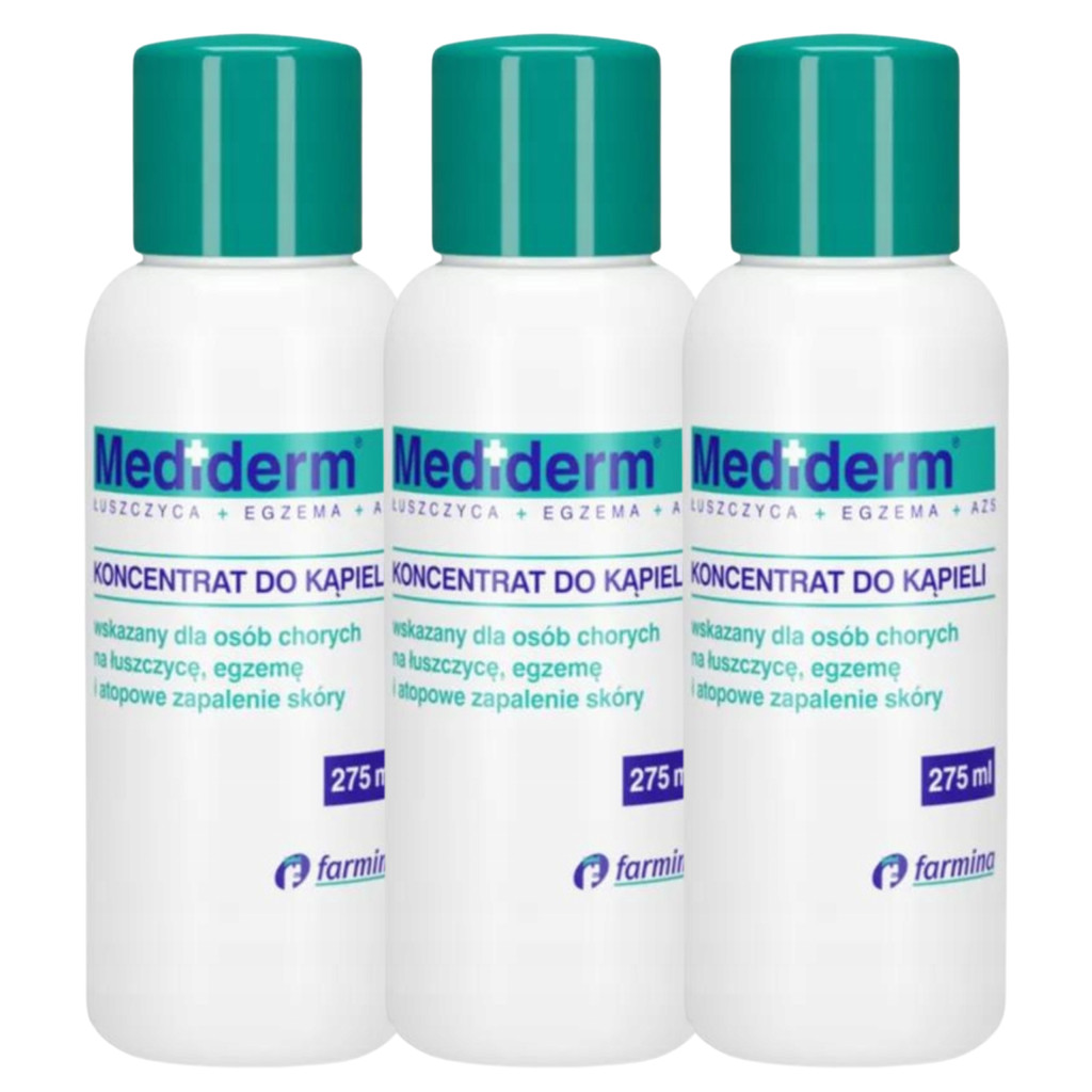 Wskazania: Mediderm Koncentrat do kąpieli to dermatologiczny wyrób medyczny przeznaczony do stosowania przez osoby chore na łuszczycę, egzemę i atopowe zapalenie skóry. Może być stosowany już od pierwszego miesiąca życia.