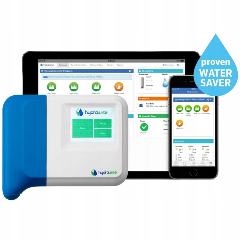 Internetowy, wewnętrzny sterownik HC-1201i daje możliwość kontroli instalacji nawadniającej przez darmową aplikację Hydrawise. Programowanie urządzenia może odbywać się przy pomocy dotykowego wyświetlacza lub smartphona z systemem iOS, Android.
