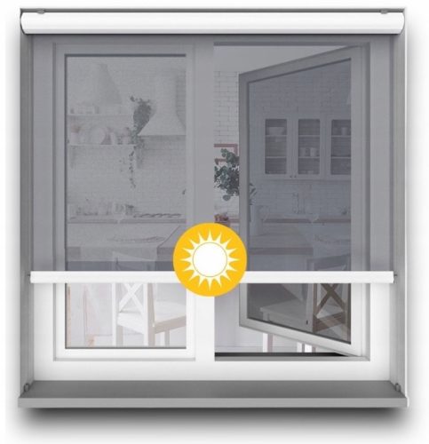 Skąd tak duża skuteczność? Tkaniny stosowane w rolecie Solar blokują 95% promieniowania UV - struktura materiału posiada małe otwory na 5% powierzchni. Dzięki temu system zapewnia widoczność na zewnątrz (w zależności od koloru - im ciemniejsza tkanina, tym większa widoczność). Z zewnątrz natomiast zapewniają prywatność domownikom przez cały dzień - dopiero w godzinach nocnych przy zapalonym świetle w środku widać domowników.