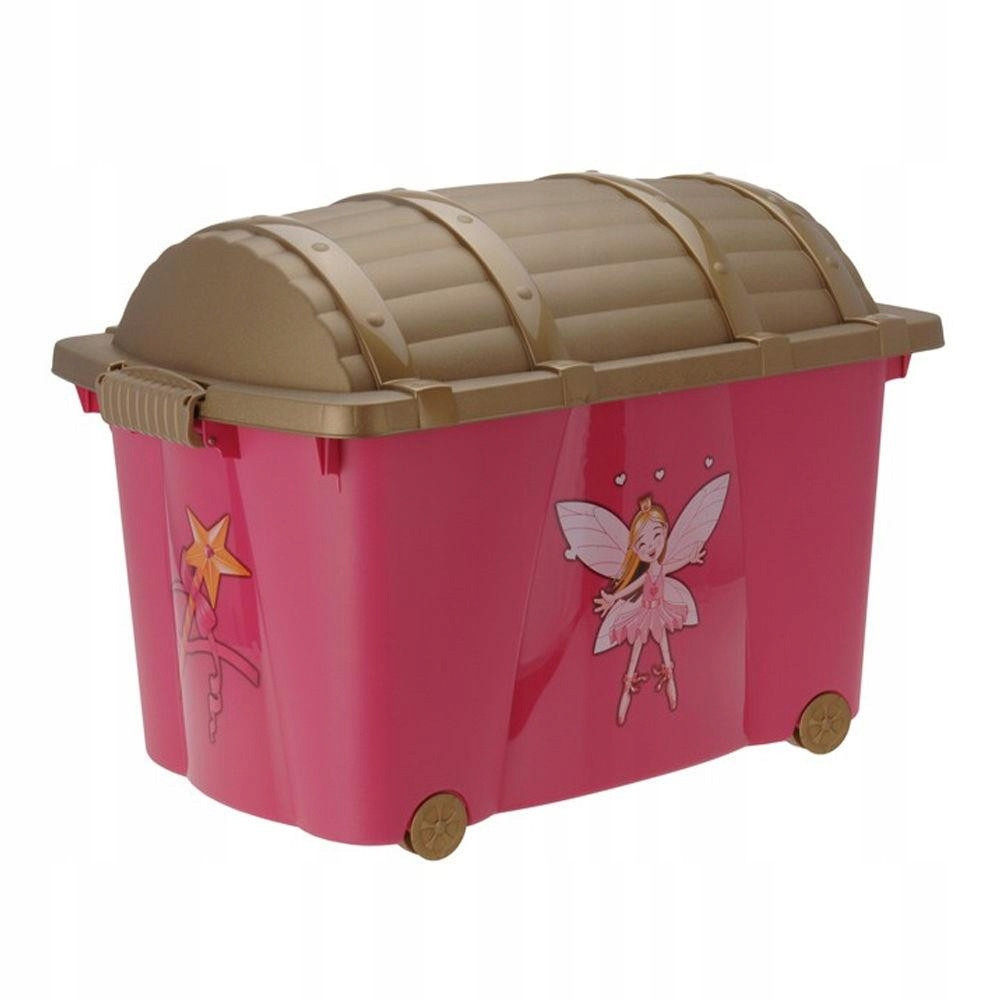 Niezwykle pojemny, 57 litrowy różowy kufer na ulubione skarby Twojej pociechy. Pomieści wszystkie cenne zabawki. Otwierany od góry. Pozwala na szybki dostęp do trzymanych wewnątrz rzeczy. Zamykany na klipsy. Mocne kółka ułatwiają dziecku transport. Oryginalne nadruki ucieszą każdą małą księżniczkę. Solidnie wykonana konstrukcja gwarantuje długotrwałe użytkowanie.