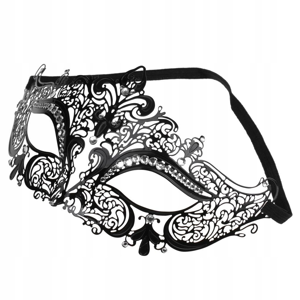 Maska wenecka Maska na oczy z kryształkami Metalowy filigran Halloween Ball Party Czarna