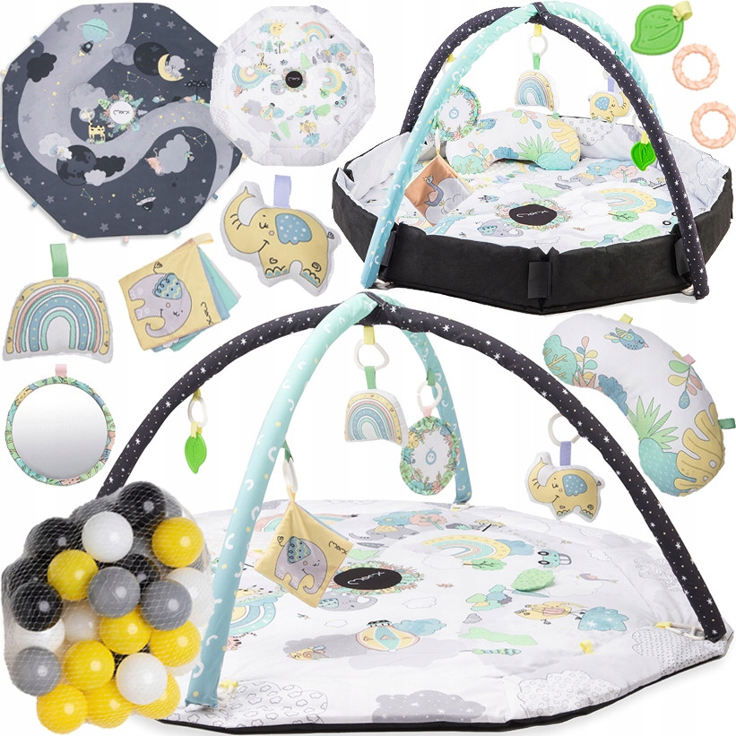 Wielofunkcyjność to niebywały atut tej maty. Pełni nie tylko funkcję klasycznej maty edukacyjnej z sensorycznymi zabawkami, ale też posiada drugą matę – ciemną, która idealnie nadaje się do zabawy – nawet dla Starszaka. MoMi DAY&NIGHT to także basenik z piłeczkami.