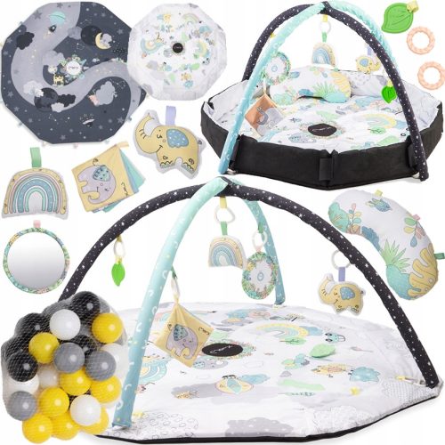 Niepowtarzalna i wyjątkowa mata edukacyjna MoMi DAY&NIGHT 3w1. Przekonaj się sama ile benefitów na Was czeka - 3w1: rozkładana mata do zabawy, mata edukacyjna z zabawkami sensorycznymi i suchy basenik z piłkami. MoMi DAY&NIGHT jest prawie tak wielofunkcyjna, jak każda Mama!