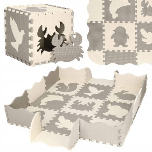 Mata piankowa składa się aż z 34 elementów (puzzle, wypełnienie puzzli i obrzeża), które po złączeniu razem stworzą nowe, ulubione miejsce zabaw dla najmłodszych członków rodziny. Warto podkreślić, że mata została wykonana z nietoksycznego materiału, a jej grubość osiąga aż 1 cm, świetnie izoluje od zimnego podłoża, ale i również amortyzuje ruchy dopiero co uczącego się chodzić dziecka. Dzięki puzzlom marki Springos, nie musisz obawiać się o niezdarne upadki malucha.