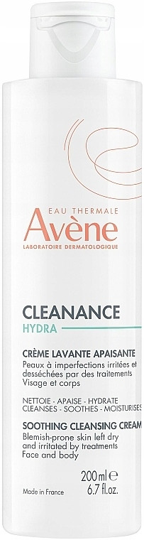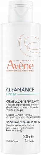 Avene Cleanance Hydra to oczyszczający krem o działaniu łagodzącym. Kosmetyk oczyszcza naskórek, jednocześnie chroniąc wrażliwą skórę wysuszoną i podrażnioną wskutek przeciwtrądzikowego postępowania farmakologicznego. Produkt pielęgnacyjny zawiera Wodę Termalną Avène oraz siarczan dekstranu, które koją podrażnienia i łagodzą zaczerwienienia skóry. Dzięki ich właściwościom Cleanance Hydra oczyszczający krem łagodzący zwiększa komfort skóry poprzez uzupełnienie poziomu lipidów.