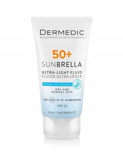 SUNBRELLA Ultralekki krem SPF 50+ skóra sucha i normalna, to produkt kosmetyczny, którego celem jest ochrona skóry przed negatywnym działaniem promieniowania UVA i UVB oraz VL i IR. Od 12 roku życia.