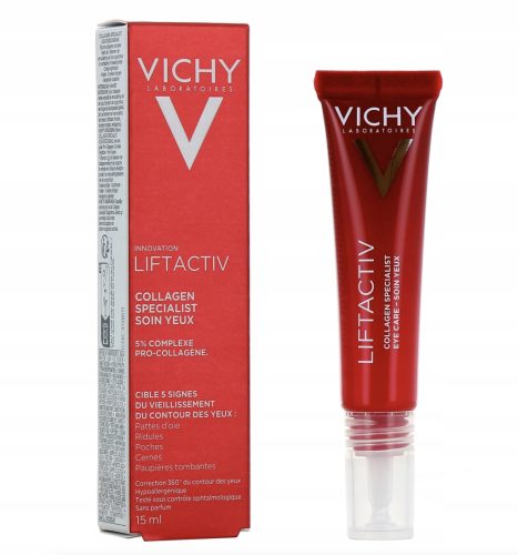 Vichy Liftactive Collagen Specialist krem pod oczy, 15 ml, to zaawansowana formuła zwalczająca oznaki starzenia się skóry wokół oczu. Dzięki unikalnej mieszance prokolagenowej i składnikom jak niacynamid i witamina Cg, krem redukuje zmarszczki, worki, cienie i ujędrnia skórę. Oferuje kompleksową pielęgnację, nadając skórze młodszy, bardziej promienny wygląd.