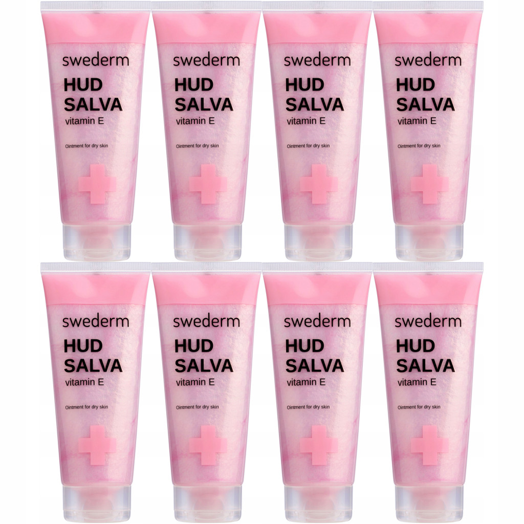 Krem do rąk SWEDERM Hudsalva vit E maść natłuszczająca do suchej skóry 800ml (8 x 100ml). HUDSALVA VITAMIN E - maść do skóry suchej. Wyjątkowo skuteczna maść regenerująca i natłuszczająca, idealna do codziennej pielęgnacji skóry suchej, odwodnionej oraz skłonnej do podrażnień. Jej formuła działa na najbardziej wymagające partie ciała – dłonie, stopy, łokcie, czy usta – przynosząc natychmiastowe ukojenie i długotrwały komfort. Delikatna kompozycja zapachowa sprawia, że codzienna pielęgnacja staje się wyjątkowo przyjemnym rytuałem.