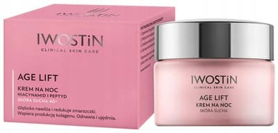 Krem przeciwzmarszczkowy na noc do skóry suchej Iwostin z linii Age Lift to kosmetyk przeznaczony do pielęgnacji cery dojrzałej, po 40 roku życia. Głęboko nawilża skórę, ogranicza utratę wody z naskórka oraz stymuluje produkcję kolagenu podczas snu.