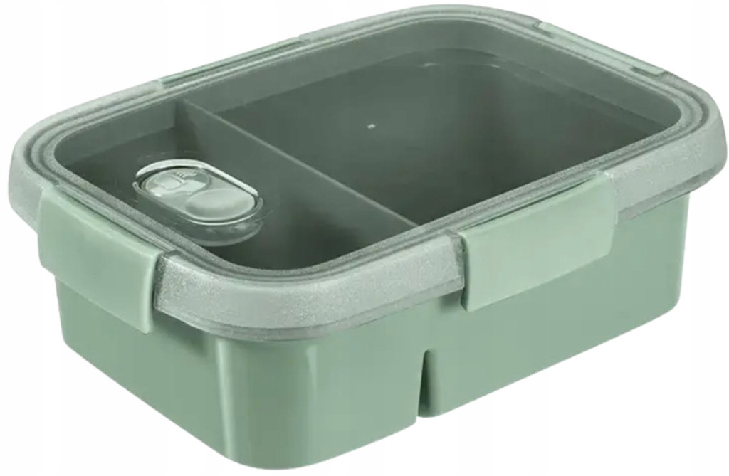 Pojemnik wyposażony w specjalną uszczelkę w pokrywce oraz solidne zapięcia, które pomagają zachować świeżość żywności oraz przegrodę umożliwiającą oddzielenie różnych składników posiłku.