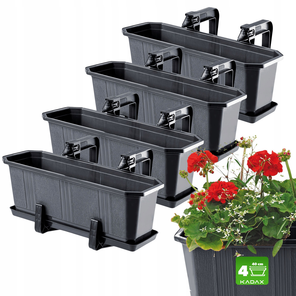 Zgrabne i estetycznie wykonane donice balkonowe z podstawkami, która razem z ulubionym kwiatem w środku majestatycznie prezentują się na balkonie, tarasie czy parapecie okiennym. Dzięki nim stworzysz ciekawą aranżację, która doda otoczeniu świeżego charakteru. Elegancja i subtelność donic idą w parze z ich jakością i wytrzymałością. Sięgnij po nie i udekoruj swoją balustradę pięknymi kwiatami!