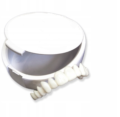 Nakładka dół i góra przeznaczona jest dla osób z ubytkami zębów, krzywym uzębieniem, widocznymi nieestetycznym przebarwieniami. W kilka chwil zapewni nam piękny biały uśmiech dzięki czemu każdy będzie się świetnie prezentował na zdjęciach np. . podczas ważnej uroczystości.