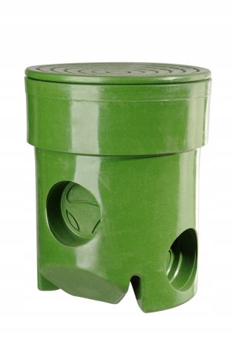 STUDZIENKA ROZDZIELCZA - służy do równomiernego rozdzielenia ścieków na nitki drenażu. Zbudowana jest ze zbiornika polietylenowego wyposażonego w otwory do podłączenia rur drenażu oraz właz z pokrywą.