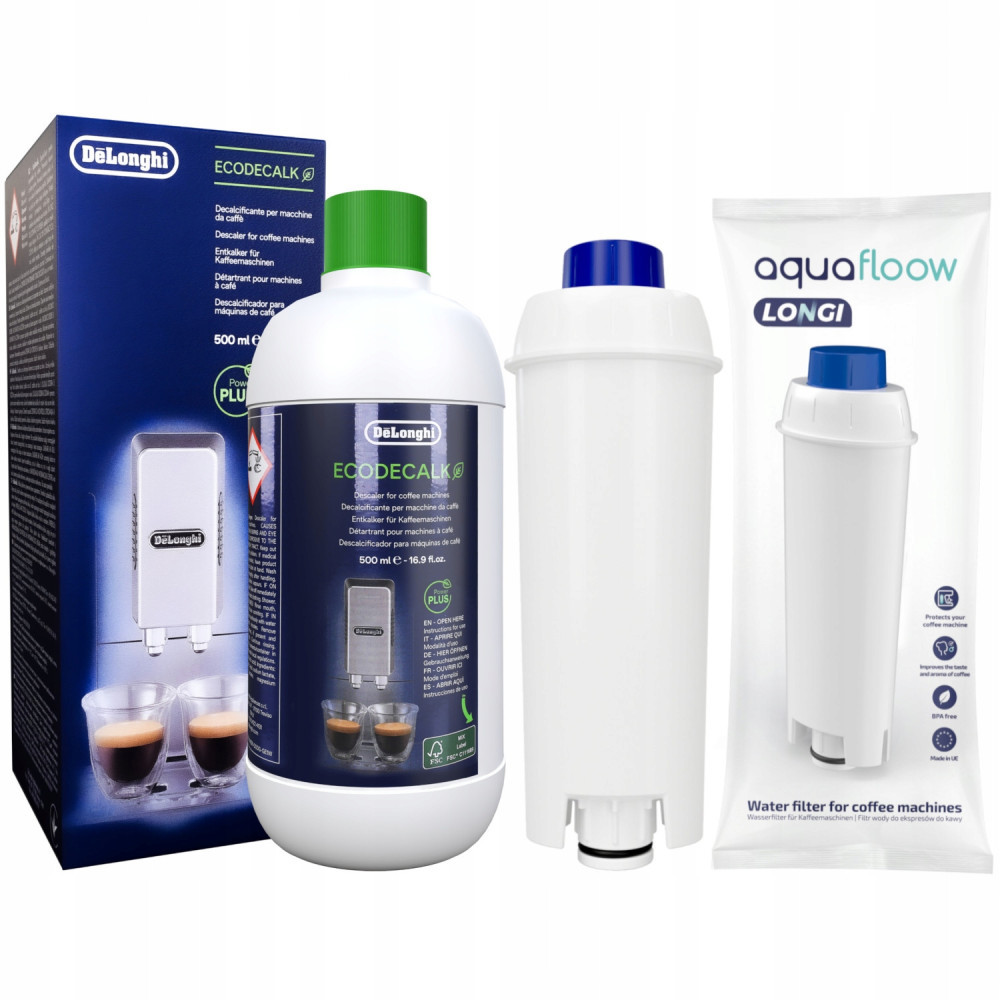 Regularne stosowanie odkamieniacza EcoDecalk produkcji De’Longhi zapewnia dłuższą żywotność ekspresu do kawy i zwiększa wydajność energetyczną (nagromadzony osad z wapnia prowadzi bowiem do wzrostu zużycia energii nawet do 30%).