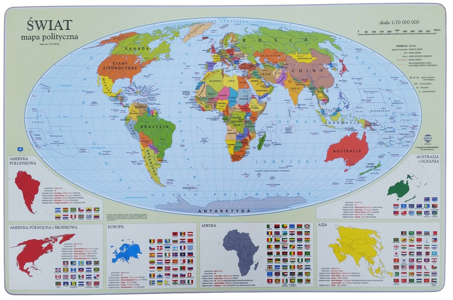 Podkładka oprócz POLITYCZNEJ mapy Świata, posiada dodatkowe dane :