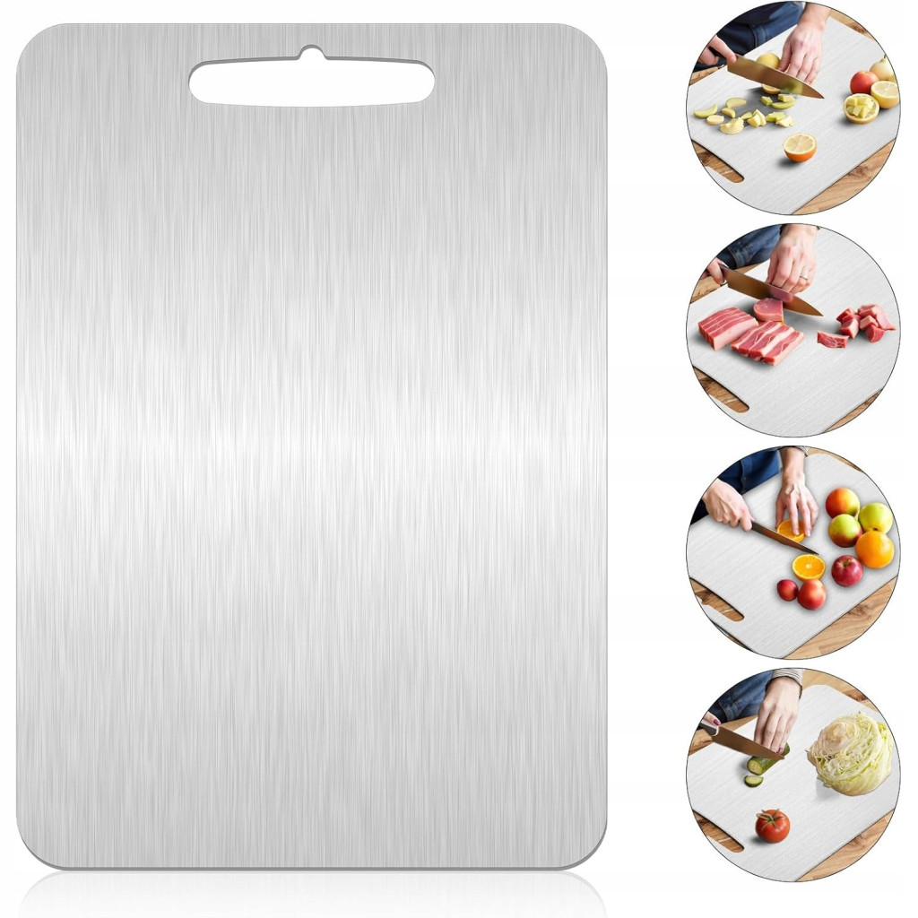 ✅Ta deska do krojenia ze stali nierdzewnej 304 została zaprojektowana z myślą o trwałości. Uchwyt do przenoszenia ułatwia przenoszenie, a solidna konstrukcja oznacza, że wytrzyma nawet najbardziej wymagające zadania związane z krojeniem. Jest również łatwa w czyszczeniu i wszechstronna. Ulepsz swoją kuchnię dzięki naszej desce do krojenia ze stali nierdzewnej!