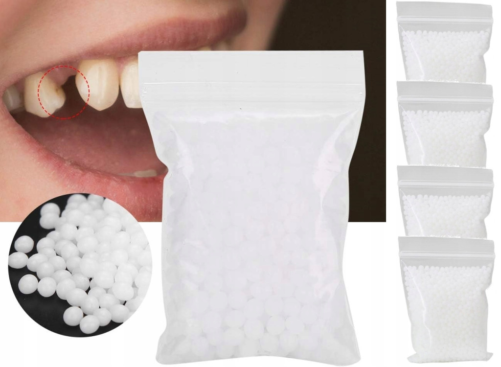 wystarczy umieścić kuleczki w gorącej wodzie (80-100 stopni celsjusza) aby stały się plastyczne i pozwoliły się formować. Pozwoli to na tymczasowe wypełnienie brakujących zębów. Kiedy materiał jest ciepły, jest praktycznie bezbarwny, dzięki czemu możemy lepiej i dokładniej wykonać żądany kształt. Biały kolor powróci po ochłodzeniu się materiału, lub po zalaniu zimną wodą,