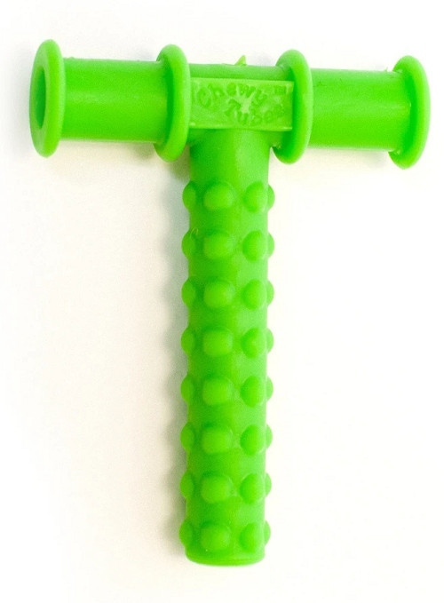 Chewy Tube to bezpieczna alternatywa dla nieodpowiednich przedmiotów, które są żute przez dzieci i dorosłych jako sensoryczna stymulacja. Ma gładką, pomarańczową powierzchnię, oraz rurkowy kształt litery „T”, który pozostawia miejsce na sznurek, który można nosić jako naszyjnik, aby gryzak był łatwo dostępny.