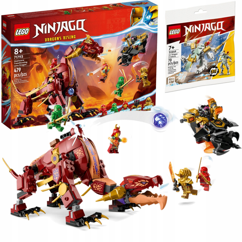 Dzięki zestawowi Lawowy smok zmieniający się w falę ognia (71793) fani ninja w wieku od ośmiu lat mogą odtwarzać swoje ulubione sceny z serialu telewizyjnego NINJAGO® Dragons Rising. Zawiera on niespotykanego dotąd smoka, którym dzieci mogą bawić się na dwa sposoby. W trybie pokojowym stoi majestatycznie, ale po odwróceniu do góry nogami przełącza się w tryb bojowy, który pozwala mu wystrzelić z piersi element mocy fioletowego smoka.