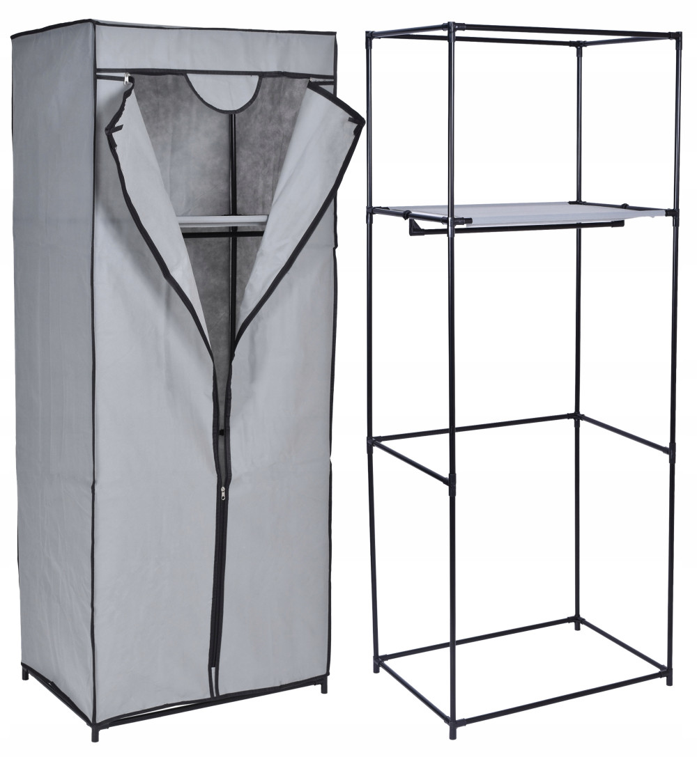 Szafa wykonana ze stalowych ramek tworzących jej szkielet. Na stelaż nałożony jest oddychający dobrej jakości pokrowiec. Jest łatwa do utrzymania czystości i praktyczna, półka idealnie nadaje się do przetrzymywania czapek, szalików, rękawiczek lub innych drobnych rzeczy. W głównej części szafy jest także możliwość zawieszenia ubrań na wieszakach. Lekka i solidna konstrukcja w dowolnej chwili możesz ją złożyć, przewieść, przestawić.