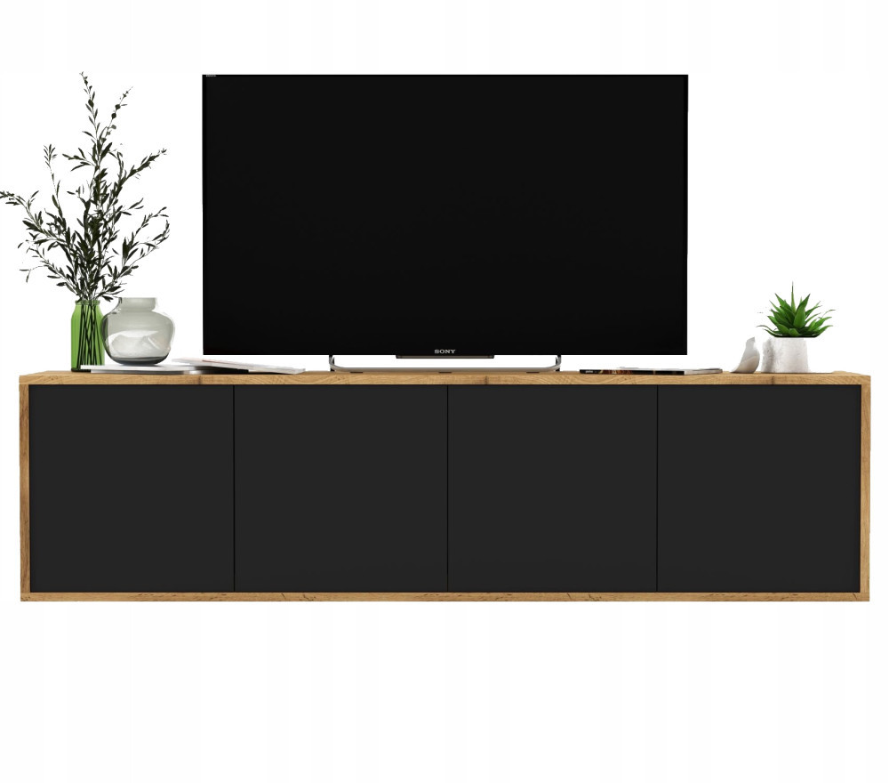 Uniwersalna szafka wisząca, idealnie nadaje się pod telewizor oraz pasuje do każdego wnętrza. Posiada dwie zamykane komory z podziałem na dwa poziomy i jedną komorę otwartą- trzypoziomową. Wygodny system "push to open" do otwierania drzwiczek.