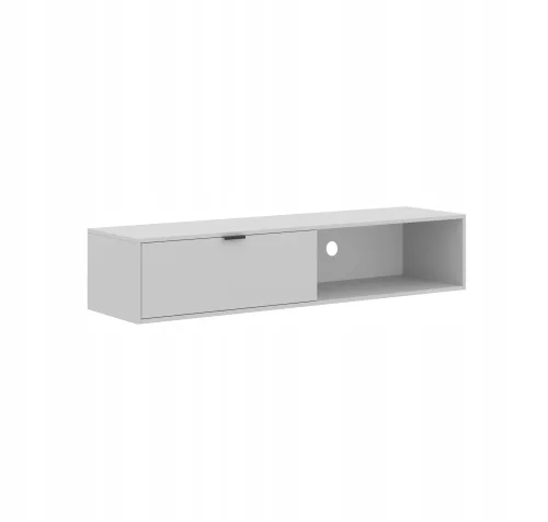 Szafka Comfy to prosty w swej konstrukcji mebel, co w tym przypadku jest zaletą. Mamy tutaj długi, gładki blat – idealny do rozstawienia dekoracji i dodatków, które nadadzą wnętrzu charakteru. Oprócz tego jest zamykana szafka z designerskim uchwytem oraz otwarta półka na sprzęt audio – wideo wraz z otworem na kable. Dzięki takiej budowie mebel jest maksymalnie funkcjonalny, pozbawiony zbędnych elementów i pozwala uporządkować przestrzeń pod telewizorem.