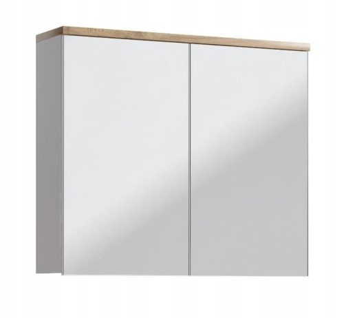 Szafka z lustrem o szerokości 80 cm posiada biały korpus, drzwi z lustrem są wyposażone w zawiasy z cichym zamykaniem.