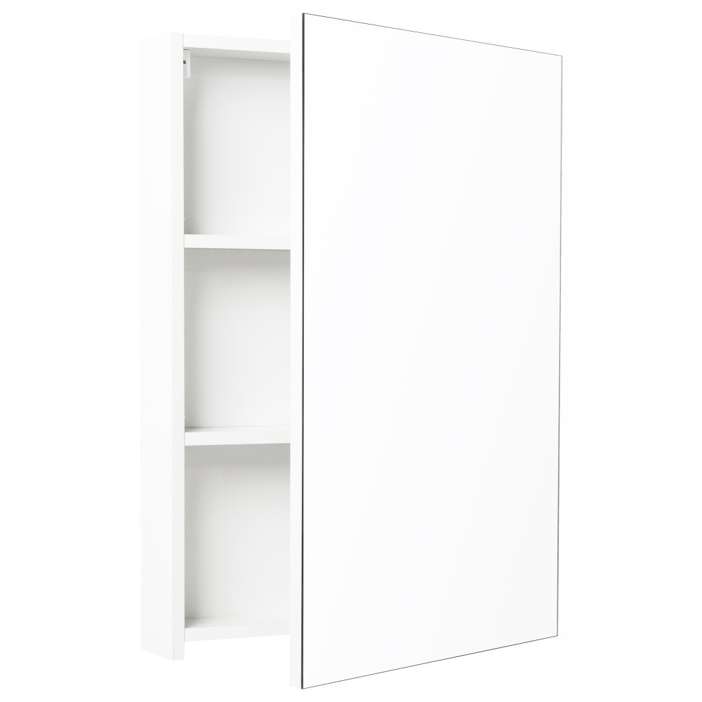 ⚡Szafka łazienkowa wisząca z lustrem w kolorze białym z dwoma półkami wewnątrz do przechowywania podręcznych kosmetyków o szerokości 50 cm. Boki szafki wykonano z lakierowanej na wysoki połysk płyty wiórowej o grubości 16mm.
