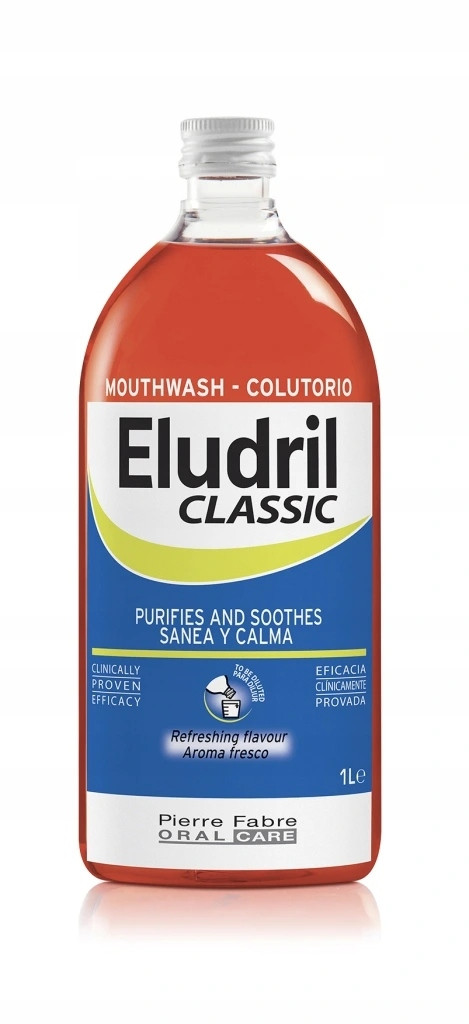 ELUDRIL Classic to najpopularniejszy płyn do płukania jamy ustnej z chlorheksydyną polecany do stosowania po zabiegach chirurgicznych w jamie ustnej, ekstrakcjach zębów, wszczepieniu implatnów, zabiegu usuwania kamienia nazębnego, kiretażu oraz w leczeniu zapalenia dziąseł i chorób przyzębia.
