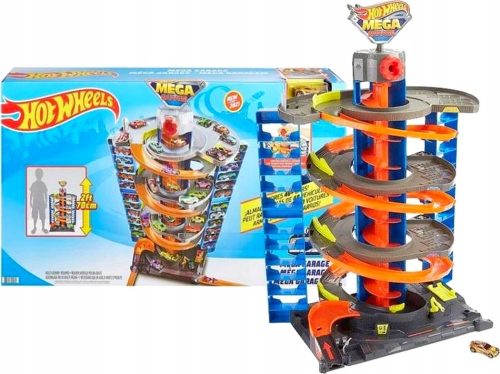 Garaż posiada spiralną windę oraz miejsce na ponad 60 pojazdów. Wyposażony jest w wiele punktów połączeń, dzięki czemu dzieci mogą zbudować indywidualny zestaw torów Hot Wheels.