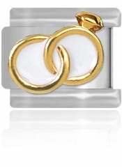 Pozłacane obrączki w formie pierścionka zaręczynowego wykończone białą emalią
