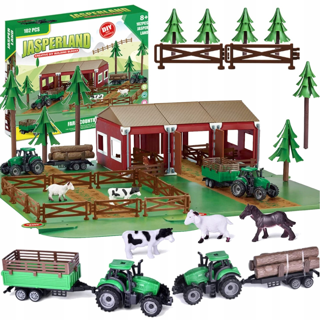 ✅ Duży zestaw farmy ze zwierzętami i maszynami rolniczymi do samodzielnego złożenia - DIY - 102 elementy, możliwość wielokrotnego składania i rozkładania