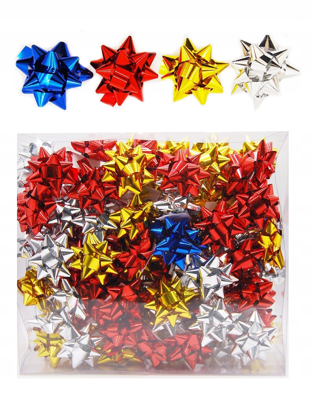 Samoprzylepna rozetka, kokardka ozdobna w mix kolorach, do szerokich zastosowań dekoracyjnych, wykorzystywana m.in. do dekorowania prezentów, pudełek, torebek papierowych, także do dekoracji auta, wygodna w użyciu - wystarczy tylko usunąć papierek i przykleić na powierzchnię w odpowiednim miejscu.