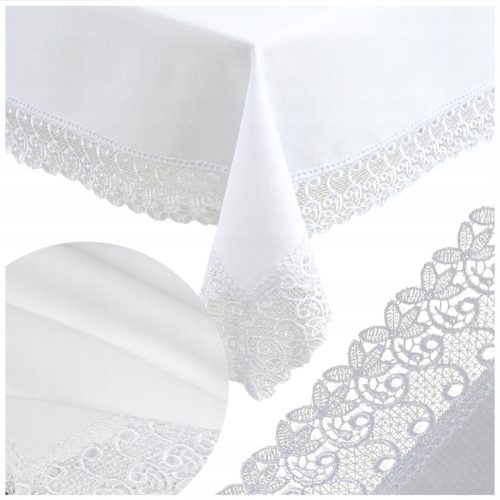 ⭐ Elegancki klasyczny obrus ozdobiony koronkowym wykończeniem. Obrus z gipiurą jest doskonałym elementem dekoracyjnym stołu.