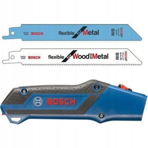 Zawartość zestawu rękojeści piły: 1 x rękojeść piły, 1 x brzeszczot Bosch S 922 EF Flexible for Metal, 1 x brzeszczot Bosch S 922 VF Flexible for Wood and Metal.