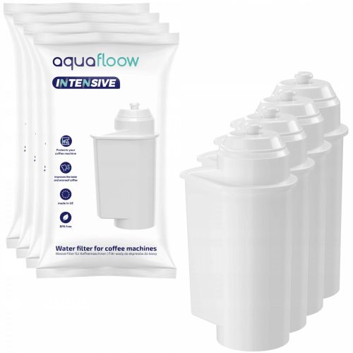 Filtr wody Aquafloow Intensive do wybranych ekspresów Bosch/Siemens oczyszcza wodę z nadmiaru osadów oraz zwiększa żywotność urządzenia. Przed zainstalowaniem w ekspresie namocz filtr w wodzie przez 5 minut.
