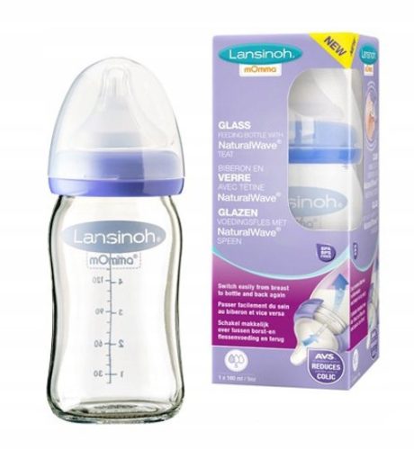 Szklana Butelka Lansinoh mOmma ze smoczkiem Natural WaveTM ,wspomaga naturalny rytm ssania u dziecka, pozwalając na utrwalenie dobrych wzorców karmienia naturalnego.