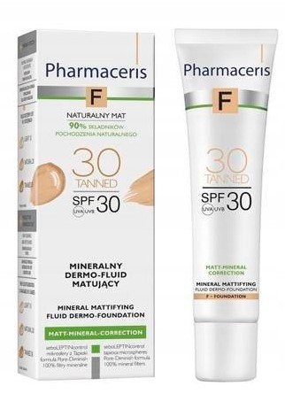 Pharmaceris F Mineralny dermo-fluid matujący Tanned 30 to kosmetyk do codziennego makijażu, wskazany dla cery normalnej, mieszanej i tłustej, skłonnej do nadmiernego błyszczenia.