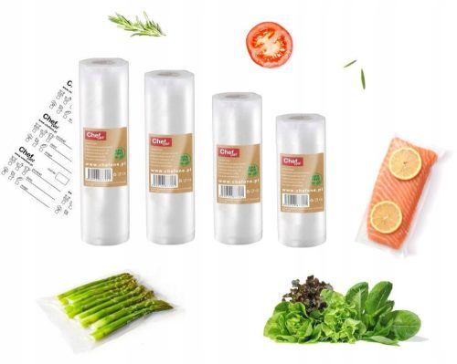 Wysokiej jakości rolka ChefOne przeznaczona do zgrzewarek próżniowych. Służy między innymi do pakowania produktów spożywczych w celu przedłużenia ich świeżości oraz gotowania sous vide. Dzięki ich zastosowaniu nie marnujemy tyle żywności co w przypadku standardowego przechowywania i zachowujemy świeżość przez dłuższy okres bez zastosowania sztuczny konserwantów.