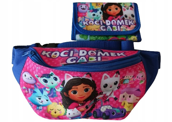 saszetka i portfel przedstawiają wizerunek bohaterów bajki Koci domek GABI