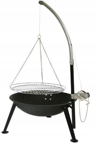 Zaletą grilla jest płynna regulacja wysokości, przygotowywanej potrawy. Przekręcając kołowrotek, zwijamy lub rozwijamy linkę na której podwieszony jest ruszt.