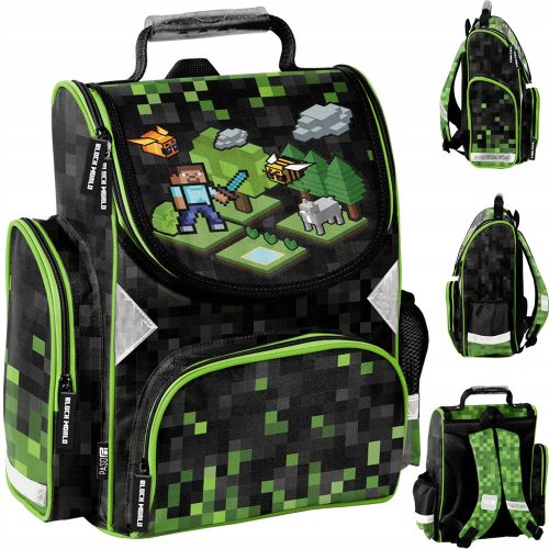 Najmodniejszy tornister kasetonowy na obecny rok szkolny z najnowszej kolekcji Paso Pixels. Czarny tornister w motywie Pikseli został stworzony z myślą o chłopcu, uczniu klas 1-3, szczególnie pierwszoklasiście, który jest fanem gier komputerowych. Plecy tornistra są ergonomiczne, pokryte siatką, usztywniane i profilowane z systemem wentylacji. Jest to przyjazne i zdrowe dla kręgosłupa dziecka. Tornister posiada usztywniony korpus dzięki czemu wyposażenie nie przewraca się i nie uwiera w plecy. Wyjątkowo lekki i pojemny, wykonany z najwyższej jakości materiałów. Oto super tornister dla odważnego chłopca.