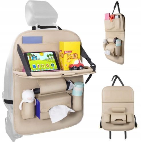 Organizer posiada 10 kieszeni oraz składany stolik z maksymalnym obciążeniem 3 kg.
