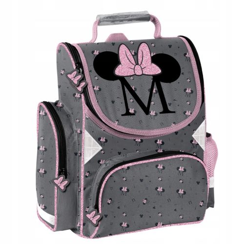Tornister szkolny. Jedna obszerna komora z wewnętrznym przedziałem. Na przodzie zapinana kieszeń. Dwie kieszenie po bokach: jedna z siatki, druga zapinana na zamek. Ergonomicznie ukształtowane, sztywne plecy. Wygodnie wyprofilowane szelki.