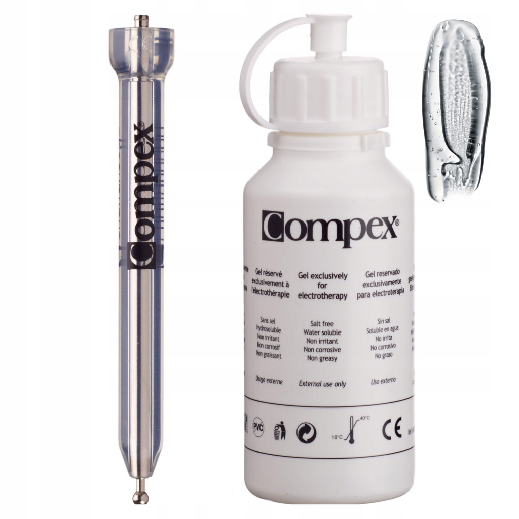 Żel przewodzący Compex o pojemności 250g to specjalny żel stworzony do stosowania w połączeniu z elektrostymulatorami Compex. Służy on jako przewodnik elektryczny pomiędzy elektrodami a skórą, umożliwiając efektywną transmisję impulsów elektrycznych.